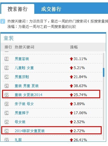 那好通过标题的组合,说明我们需要寻找出 2014开头的童装词。